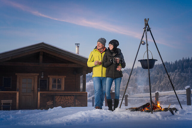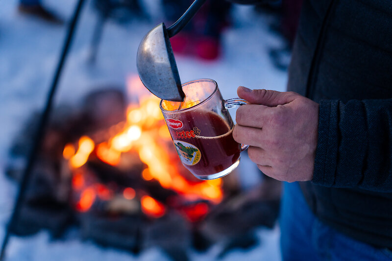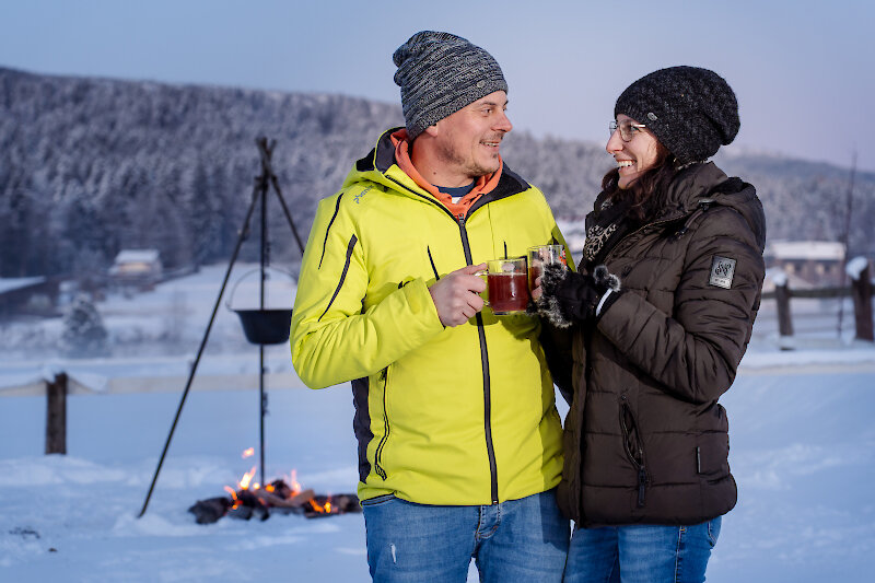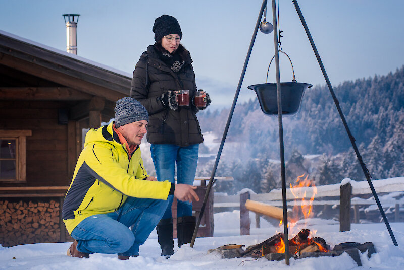 Abends gibt es Fackelwanderungen - anschließend Glühwein oder Kinderpunsch am wärmenden Feuer, mit Würstchen-Grillen und Marschmallows.