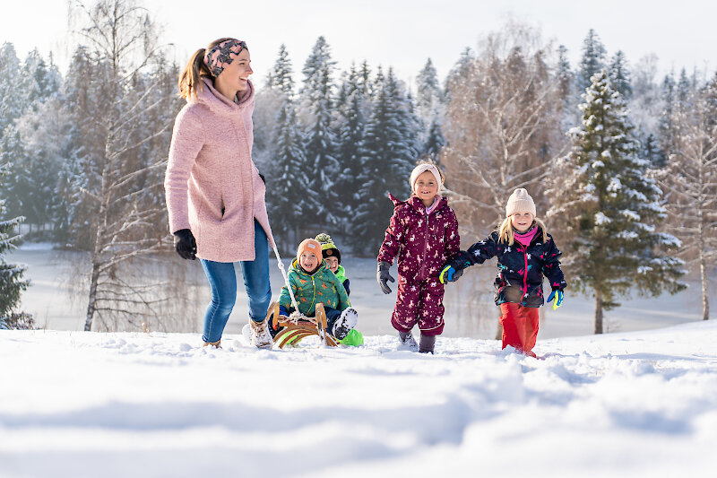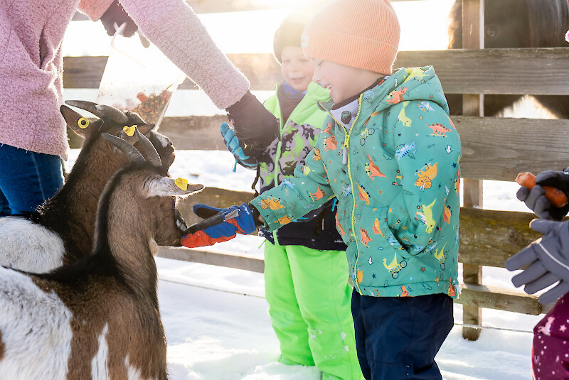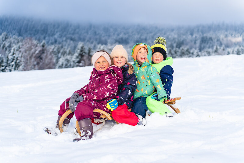 Rauf auf den Berg und runter mit Schwung! Rund um den Hof und Richtung See oder Berg gibt es zahlreiche Möglichkeiten, etwas Adrenalin beim Schlittenfahren zu spüren. Schlitten sowie verschiedene Rodelgeräte können gerne bei uns geliehen werden. So kann man Richtung Stausee die großen Berge runter saußen oder am Hof die Abfahrten oder selbst gebauten Schneeberge nutzen.