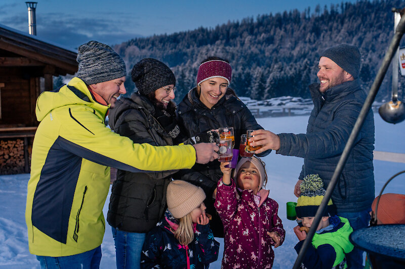 Jede Woche gibt es eine schöne Fackelwanderung mit anschließendem Lagerfeuer- dazu Würstchen Grillen & Kinderpunsch oder Glühwein. Zum Aufwärmen und gemütlichem Zusammensein lädt unsere Holz-Grillhütte für bis zu 30 Personen ein.